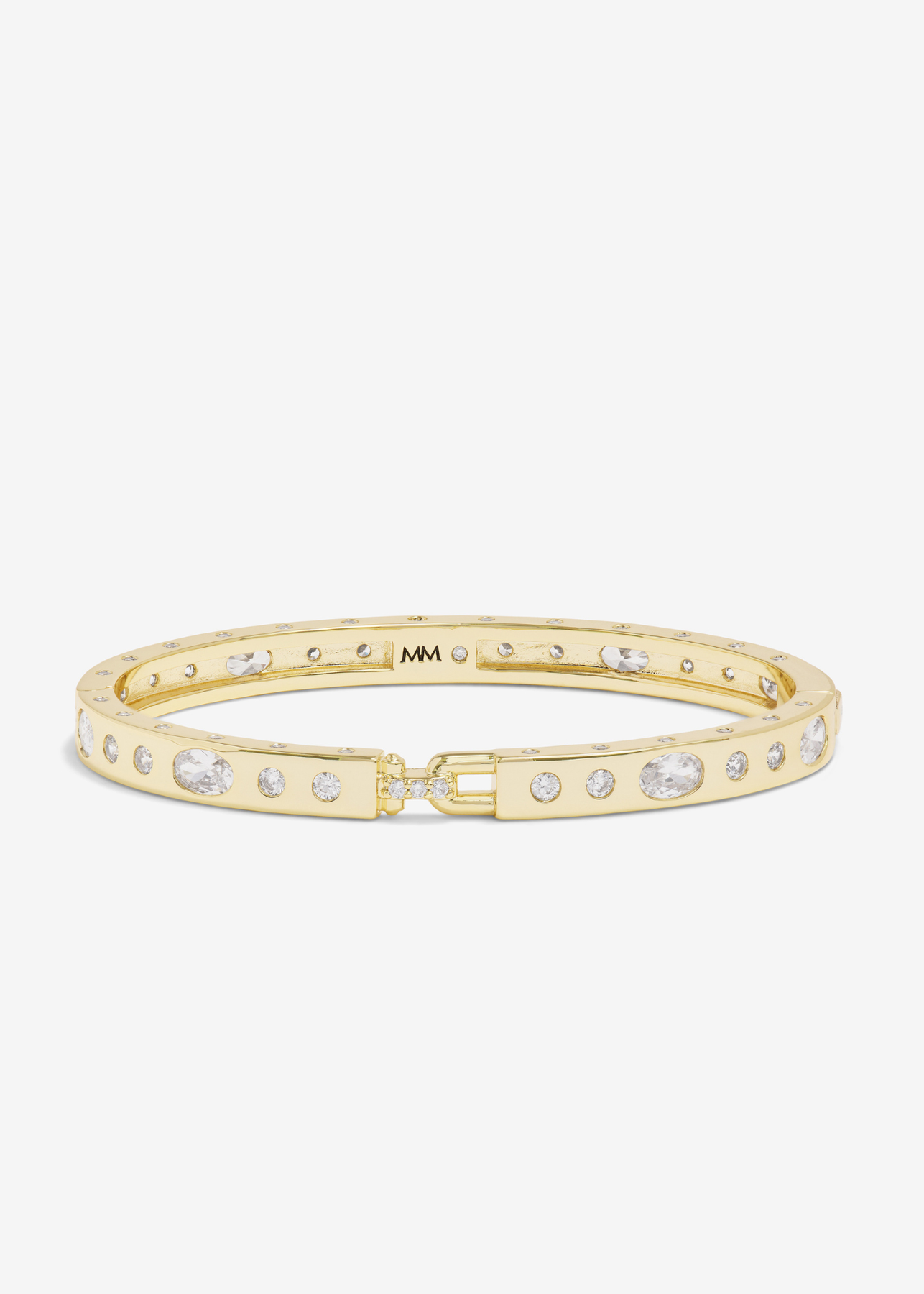 Lock in. Designed with lock-inspired detailing and accented with a mix of oval and round bezel-set simulated diamonds, finished with a seamless hinge that closes with ease. Ashley just clicks.