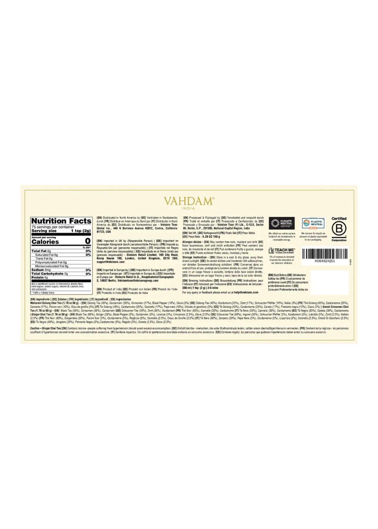 Tea flavors: Ginger Chai Spiced Black Tea, Maharani Chai Spiced Oolong Tea, and Sweet Cinnamon Masala Chai Tea