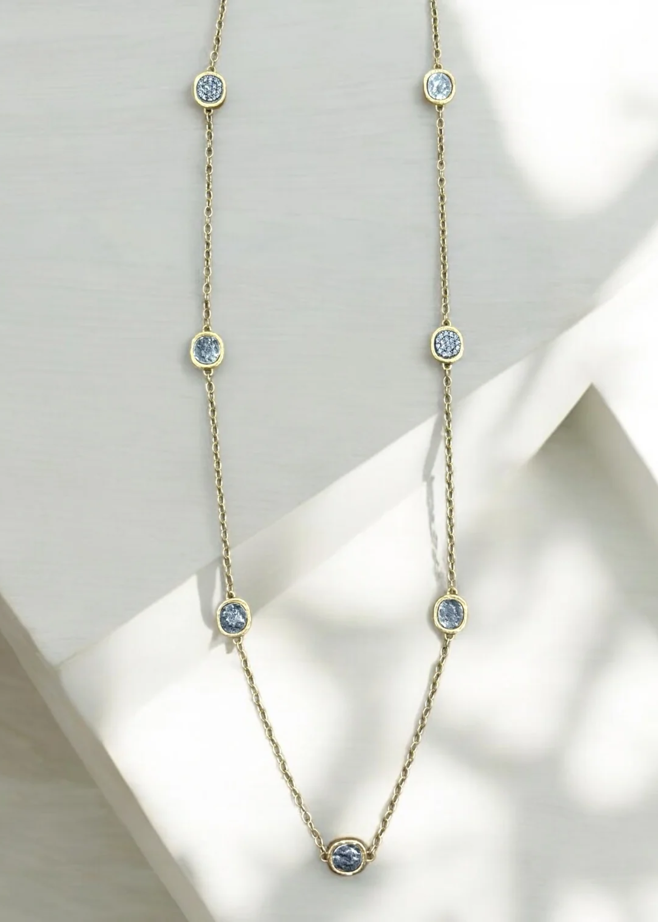 Necklace layering has never looked so good! This 41" dainty gold chain necklace is studded with silver coins that give it an edgy look.