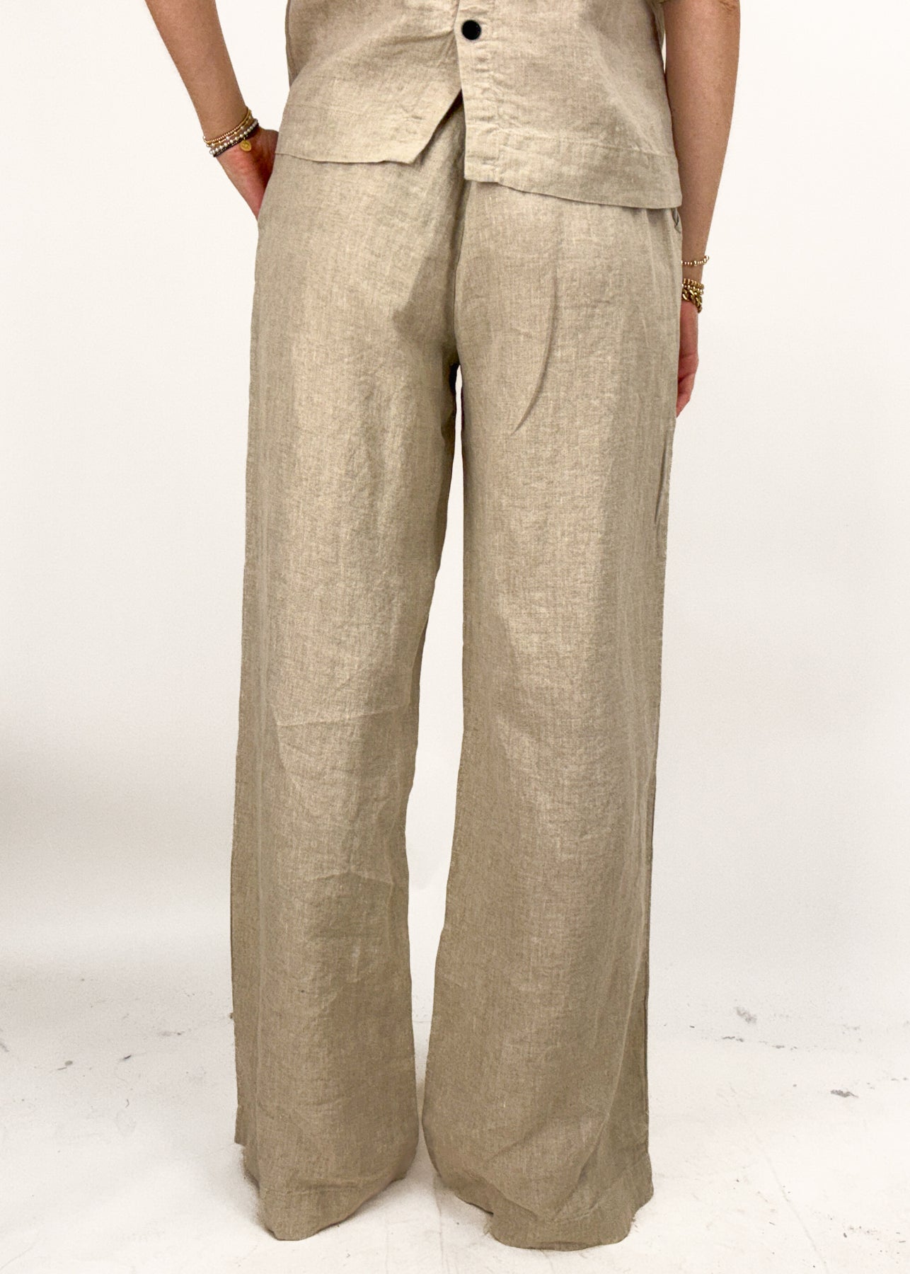 Tan linen wide leg pants are the just the closet essential you need for spring and summer styling! These bottoms are so versatile and are great for a day on vacation or just for running errands.