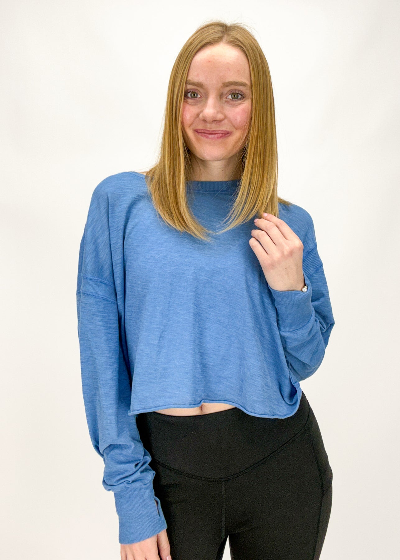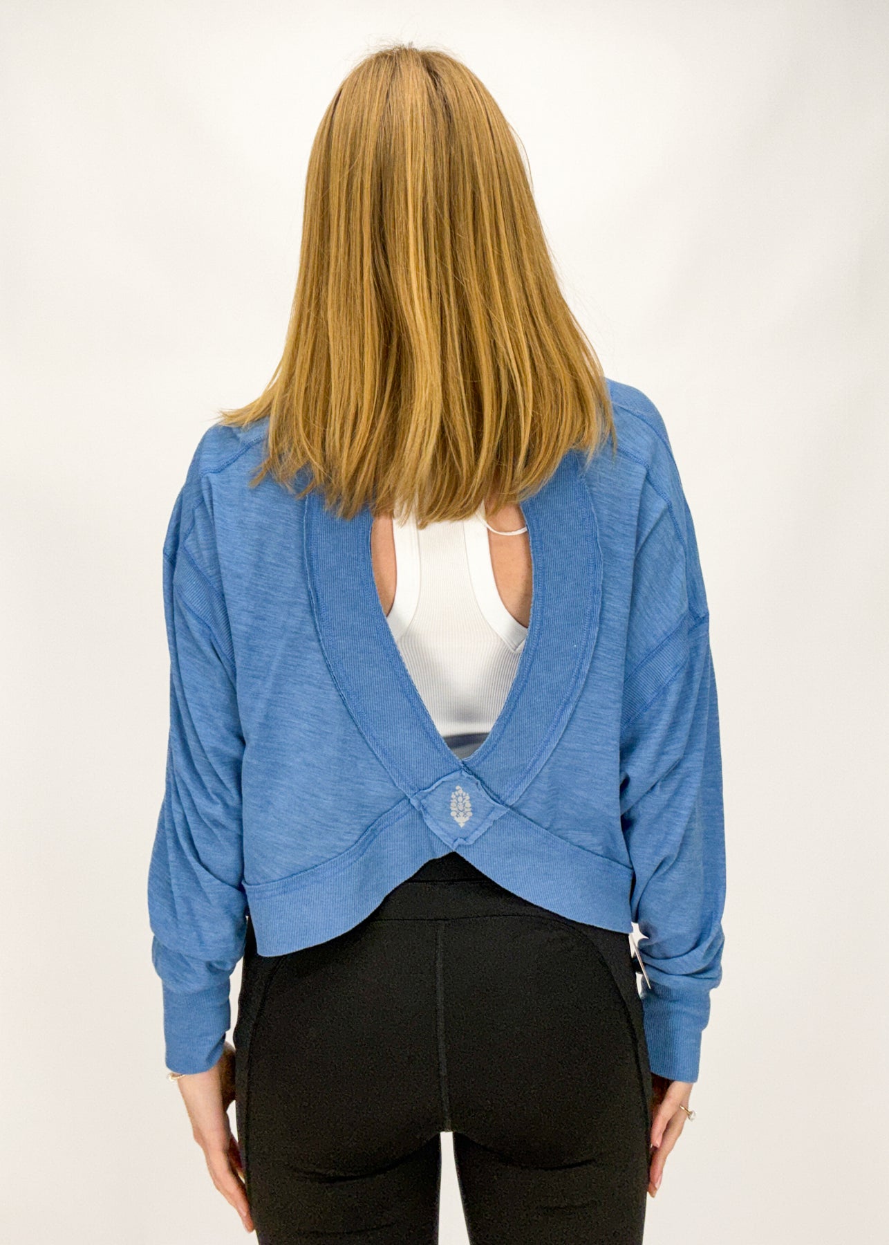 Perfect for going to or from a workout, this layer features a soft fabrication, slouchy crop, and flattering back opening.