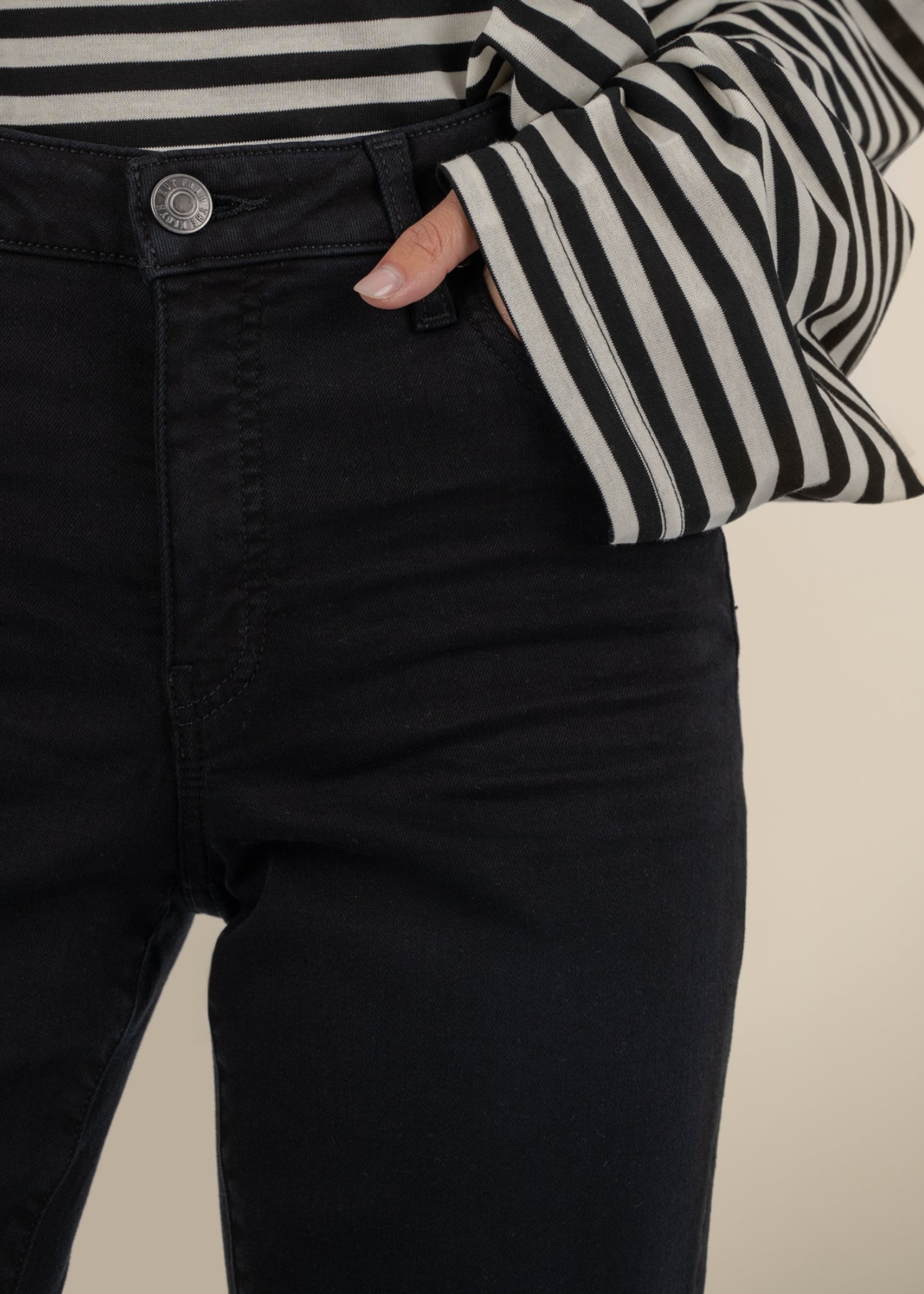 These high-rise ankle flare jeans feature our signature Fab Ab pockets for a flattering fit. With a trendy raw hem and a touch of stretch, they combine style and comfort for an effortlessly cool look.