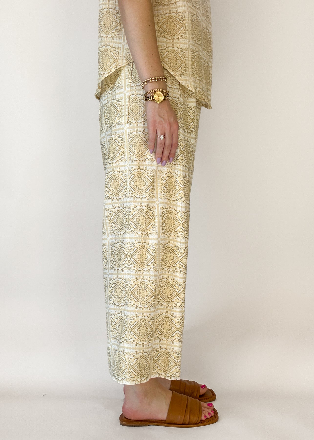 Sister Mary Beige Tile Pattern Pants