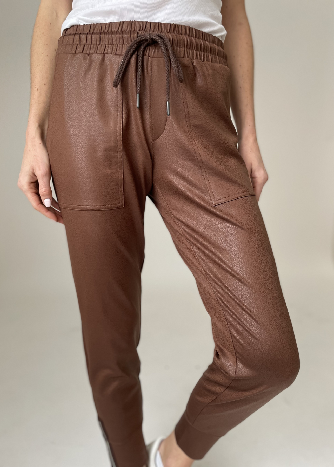 The coated joggers you love are back! With a sleek, coated fabric and edgy zipper design, this jogger will have you looking stylish all season long.