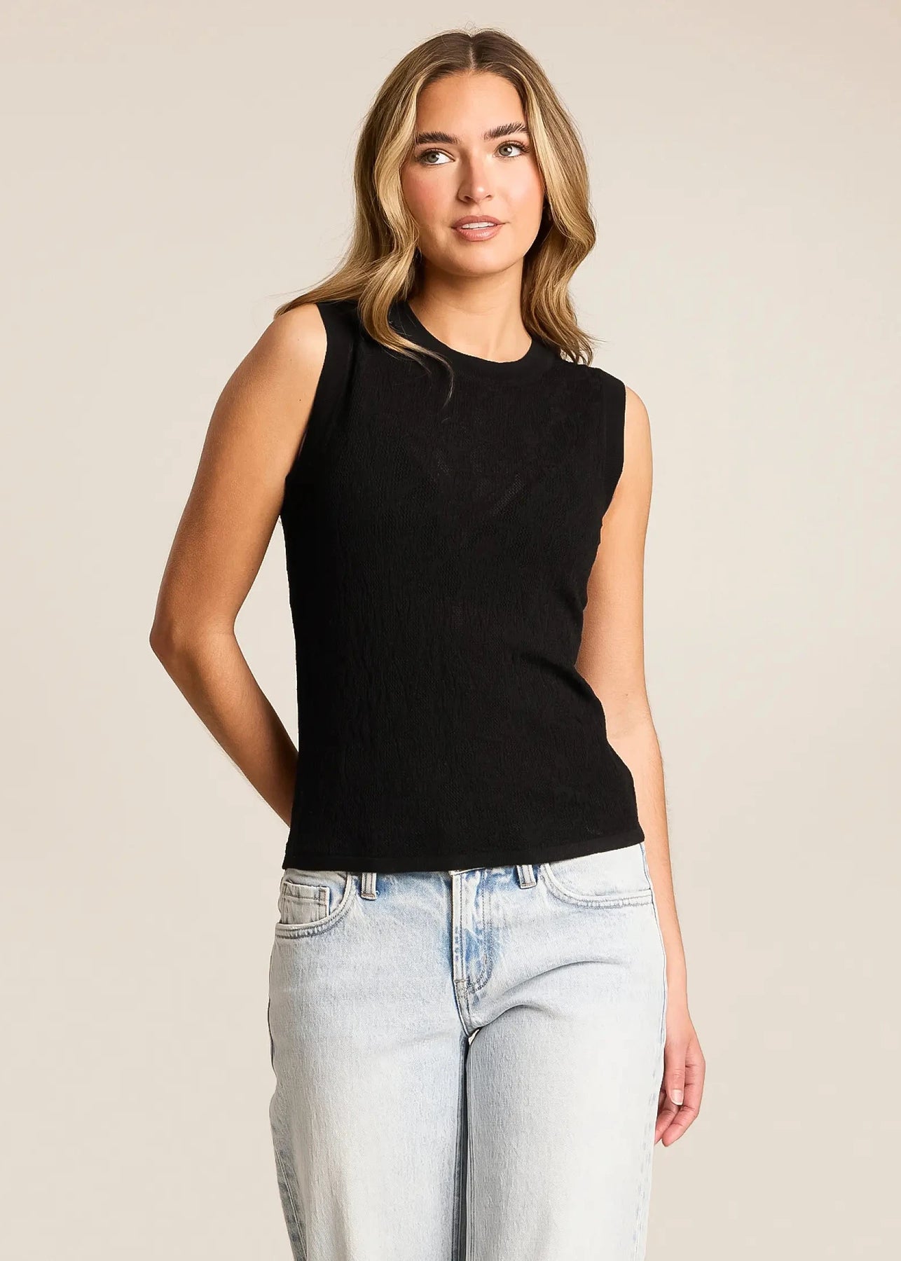 This sleeveless top made from a yarn blend has a lightweight feel making it comfortable and easy to wear. Its mesh detail makes it ideal for dressing up or down depending on your day.