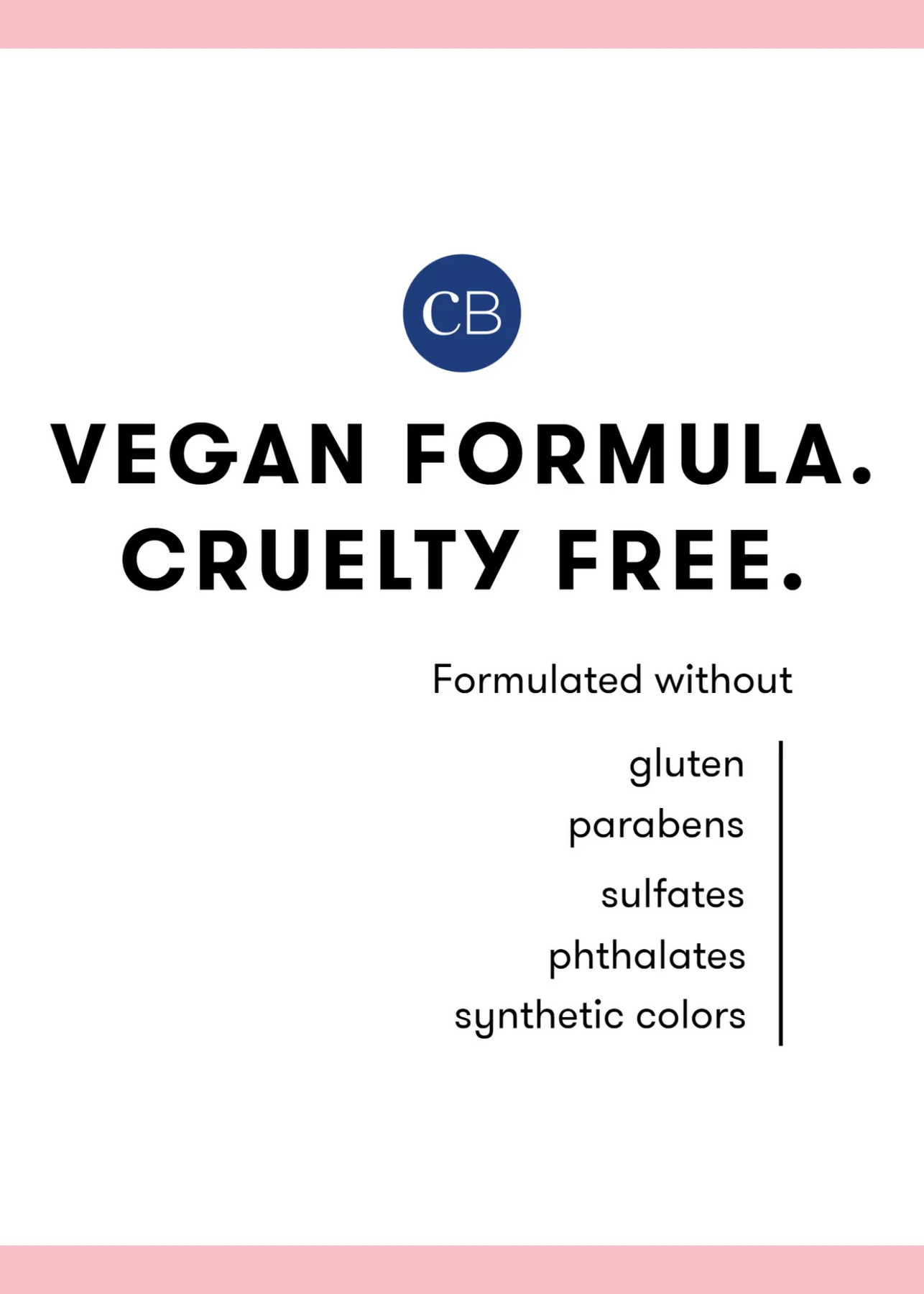 Vegan formula. Cruelty-free. Formulated without gluten, parabens, sulfates, and phthalates. No synthetic color.