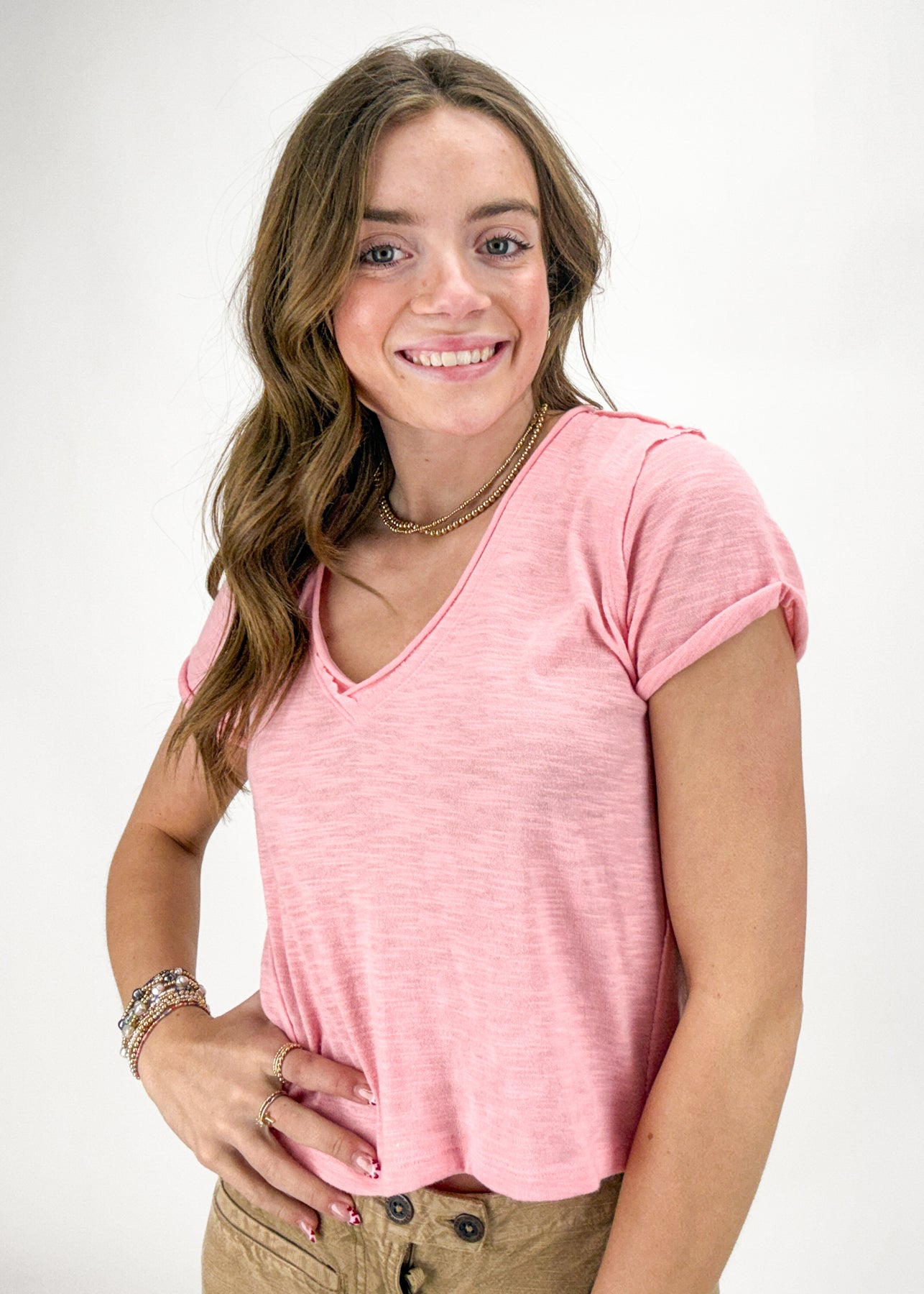 Perfect for layering, this short-sleeved tee from We The Free is featured in a boxy cut and a V-neckline for endless outfitting potential.
