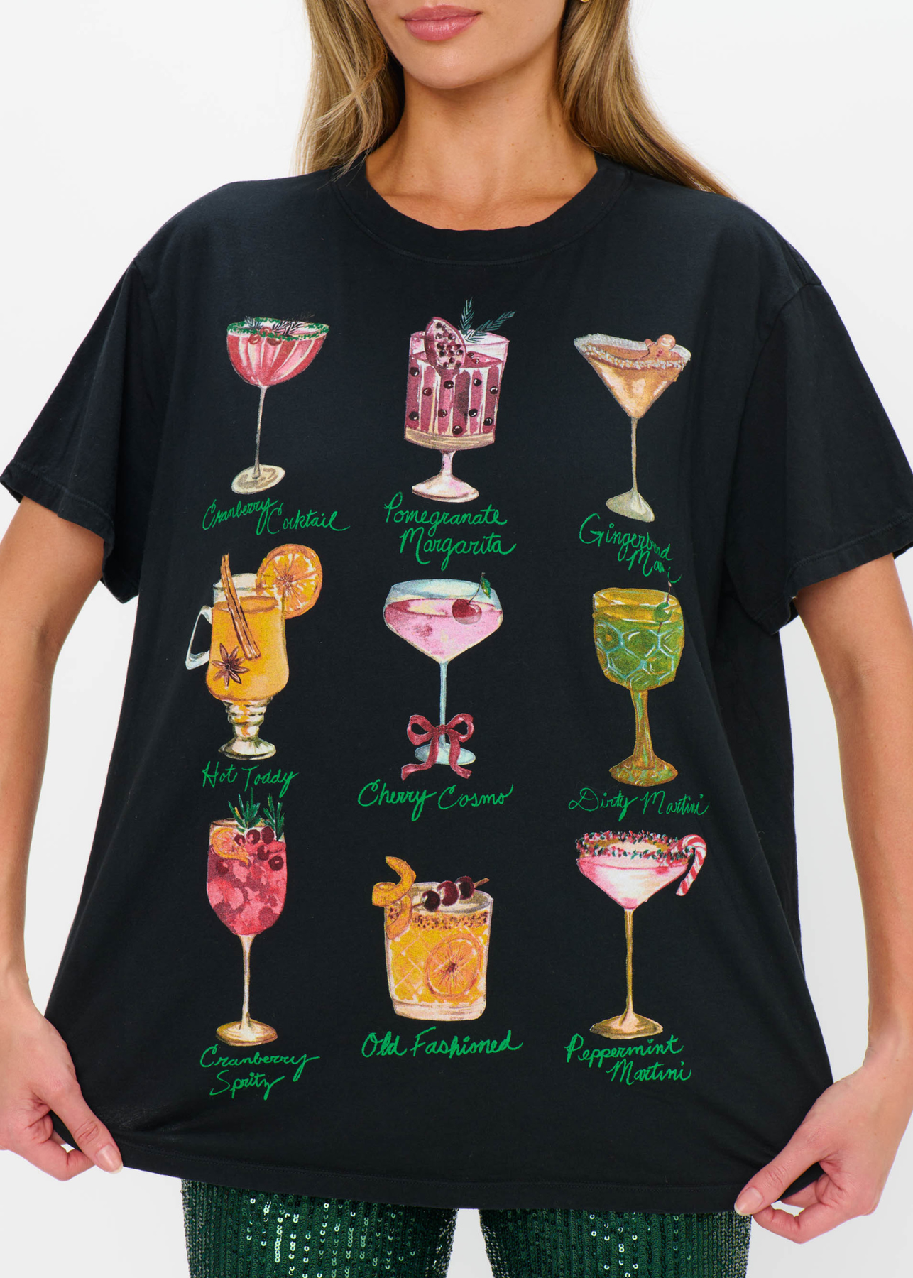Make a statement this holiday season in this trendy cocktails graphic tee from Show Me Your Mumu! With an oversized fit, this piece is perfect paired with sequin bottoms or a mini skirt.