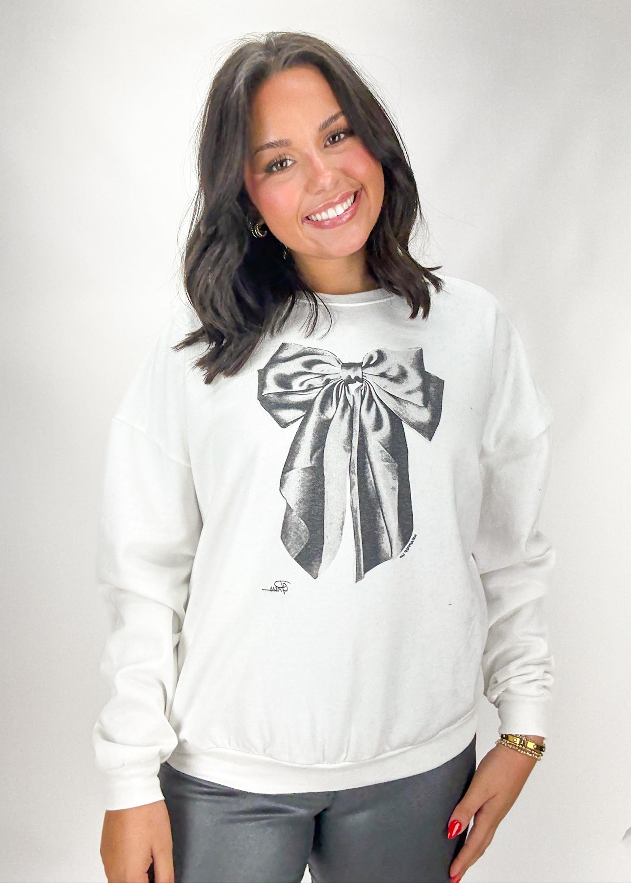 Wrap up your holiday look with this cozy sweatshirt from CPRESS Studios! Featuring a trendy bow graphic, this top is the epitome of a cool holiday look.
